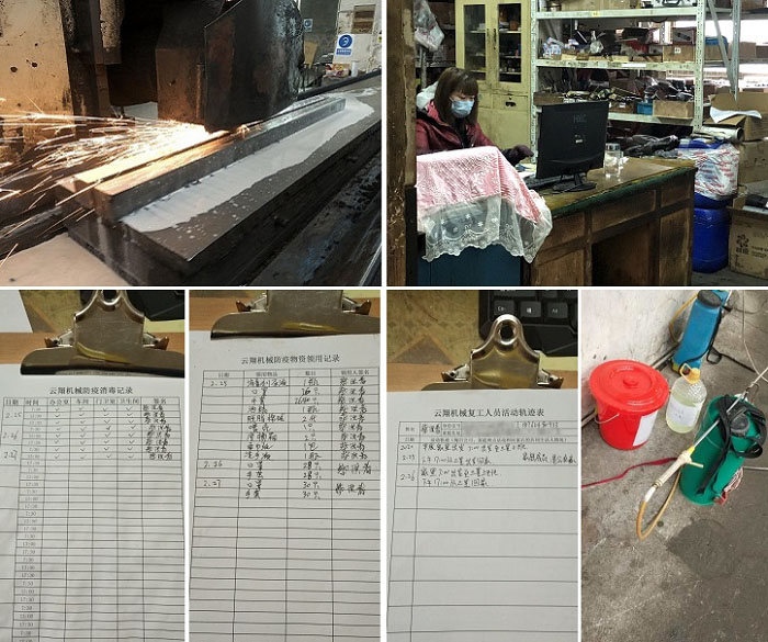復工第三天,云翔機械齒條齒輪生產(chǎn)車間井然有序。分發(fā)防疫用的口罩與手套,門衛(wèi)、辦公區(qū)、車間、衛(wèi)生間做好消毒工作,并認真做好記錄。復工員工每日活動軌跡表認真填寫,記錄自己在公司與家兩點之間的活動軌跡。車間管理每日提醒員工盡量在兩點之間活動,減少與外界的接觸,防控疫情,保障齒條齒輪生產(chǎn)的正常運作。